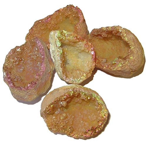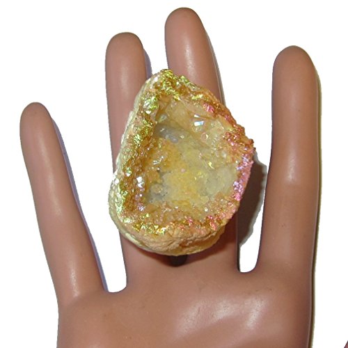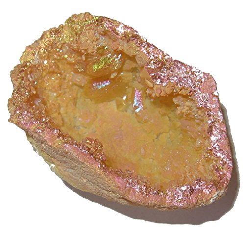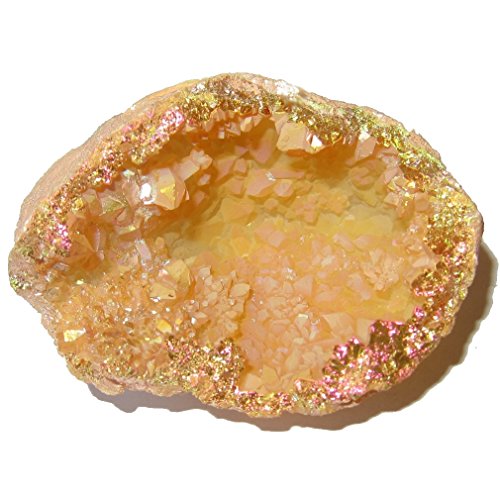 Your half dome geode is made from beautiful opal aura rainbow quartz. The yellow and orange points have been coated with spectacular rainbow colors for a stunning look and energy. Receive one unique cluster per order from a hand picked Satin Crystals collection.