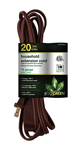 GoGreen Power GG-24820 16/2 20' Household Extension Cord - Brown
