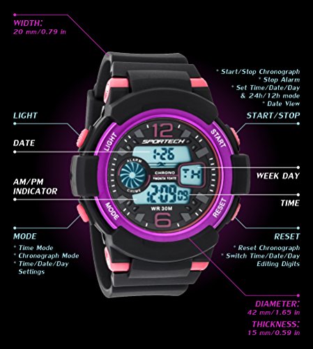 Sportech Unisex SP12002 Multi-Function Black Pink Medium Electronic LCD Sports Watch for an Active Lifestyle: Date, Alarm, Chronograph, Night-Light, Water and Shock Resistance