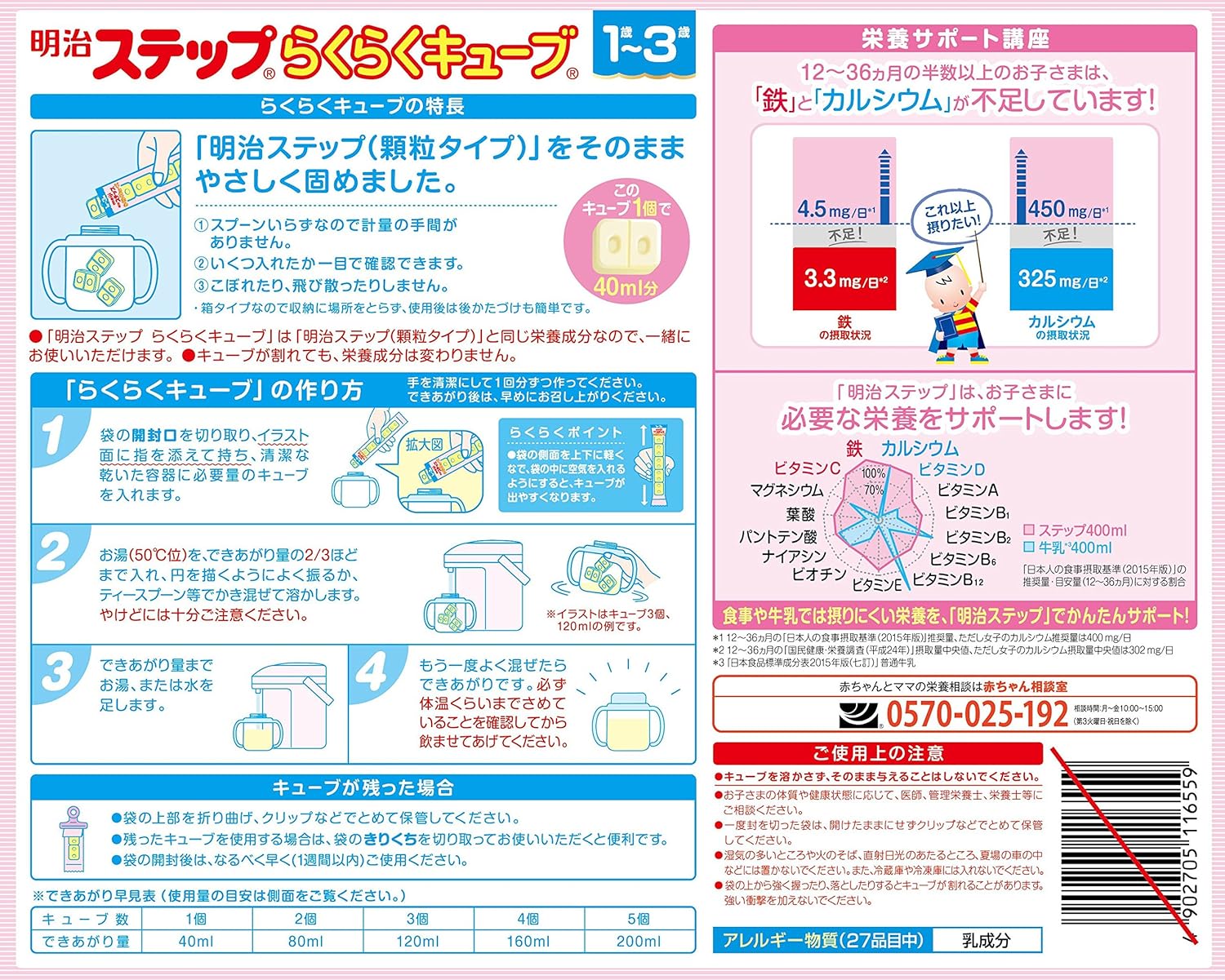 ※「明治ステップ らくらくキューブ」は「明治ステップ(顆粒タイプ)」と同じ栄養成分なので、一緒にお使いいただけます。