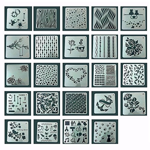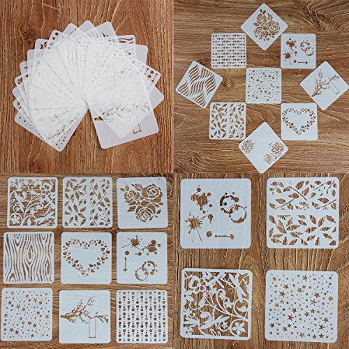 Eliseo 24 PCS Bullet Journal Stencil Plastic Planner Set for Journal / Notebook / Diary / Scrapbook DIY Drawing Template Stencil 5x5 Inch