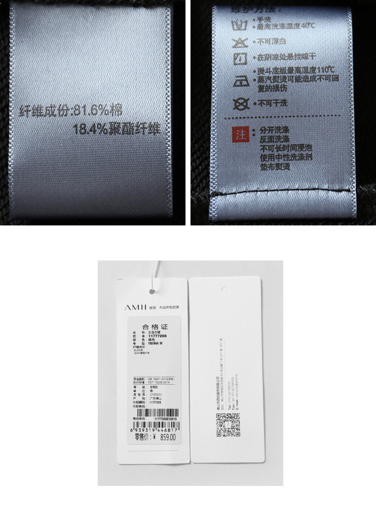 | 洗涤标准: | 不可浸泡悬挂晾干不可干洗不可漂白110℃以下垫布熨烫40℃以下手洗 |