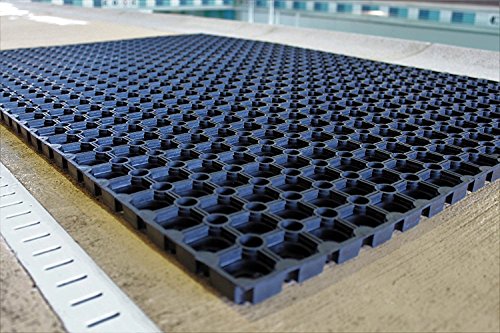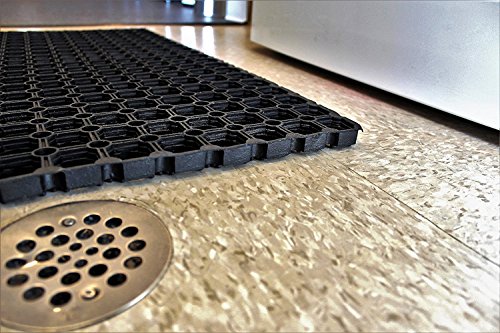 Our commercial rubber mats are ideal for use in kitchens, garages, bars, bathrooms or any place that experiences a lot of spills. The drainage holes in these rubber floor mats make them well-suited for helping keep work areas clean and their grip and traction offer anti-slip protection. Happy customers. Our first priority is the happiness of our customers and we believe in only creating and selling the highest quality of products. If for any reason you have any issue with your purchase, our customer service team will gladly take care of it. The best quality. We believe in creating only the highest quality products using resources which are sustainably made. Heavy recycled rubber. This rubber floor mat is just the right thickness and is designed to withstand any type of weather including wind, snow and rain. It will hold up for multiple seasons and is created to last for years to come. Drains debris & won't slip. The indoor outdoor mat with drainage holes leaves space for water, snow, slush and dirt to drain off with ease. You and your house guests can wipe your shoes off without the mat moving or sliding. It's easy to clean and is built to last. Designed to be tough and durable with drainage areas for water, salt and slush and the black color won't fade. Excellent grip, non slip protection and anti-fatigue - the drainage holes in these rubber floor mats make them well-suited for helping keep work areas clean and their grip and traction offer anti-slip protection. Ideal for use in homes, kitchen floors, offices, garages, bars, bathrooms or any place that experiences a lot of spills. Keeps floors clean- this indoor outdoor rubber mat is great for any type of flooring in the entryway, the garage, laundry room, on the patio, workshop, kitchens, offices and anywhere there is high traffic from outside.Feature