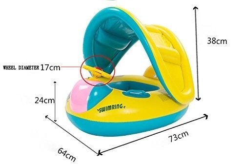 -. Feature : 2015 New Baby Swim Ring Inflatable Toddler Swimming Pool Float Seat with Canopy / Weight: 659 g Condition: new Material: environmentally friendly PVC / Suitable for babies less than 8 years old. / Help babies swimming independently, promote their development. Offer babies safety and comfort while swimming and bathing .