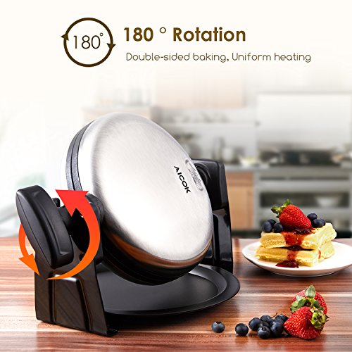 Aicok Waffle Maker, Belgian Waffle Maker, Stainless Steel 180 Degree Fast & Easy Flipping, Automatic Double-sided Heating Baking For Fluffy & Golden Waffles