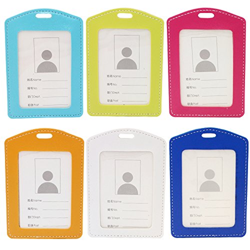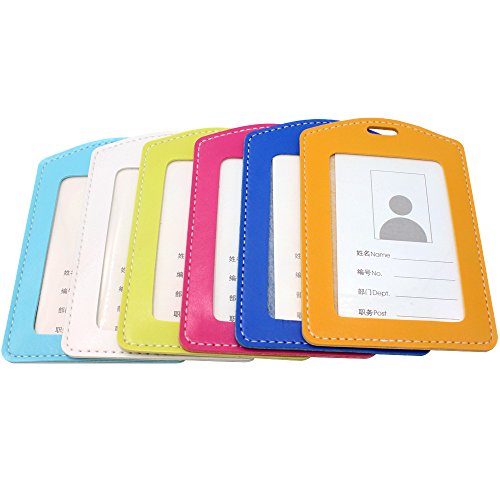 NIUPIKA Leather Vertical Name Tag Badge ID Card Holders Clear Plastic Waterproof Office Business Working Staff Cards