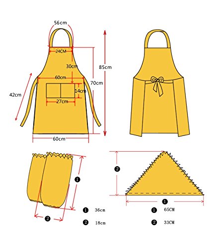 - Dimension: apron about 70*60cm/27.6*23.6", sleeves about 36*18cm/14.2*7.1" and kerchief about 65*33cm/26*13", and package included 1piece of multipurposed cloth apron, 1pair of sleeves and 1 piece of kerchief which will protect your clothes get dirty when you do housework , cleaning, laundry or in a work place