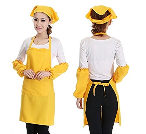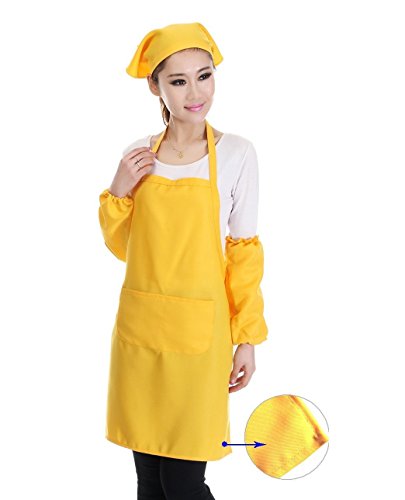 Cindy&Will 1Piece Multipurposed Kitchen/Factory Painting/Cooking/Housework/Laundry/Grooming/Baking Cloth Apron with One Pair of Sleeves and a Kerchief, Yellow