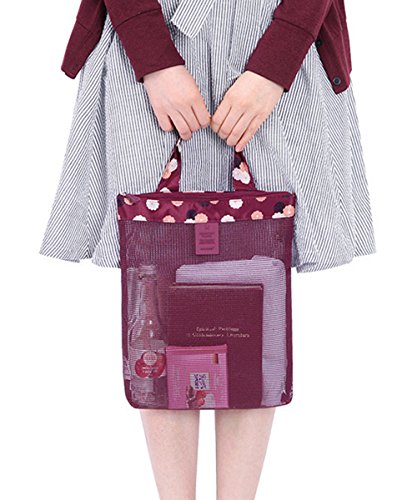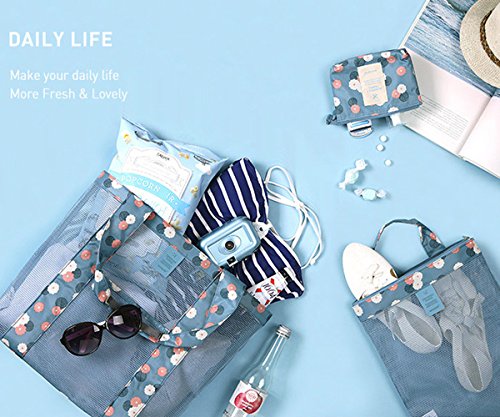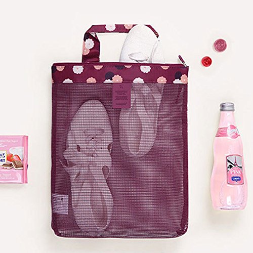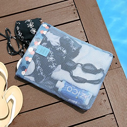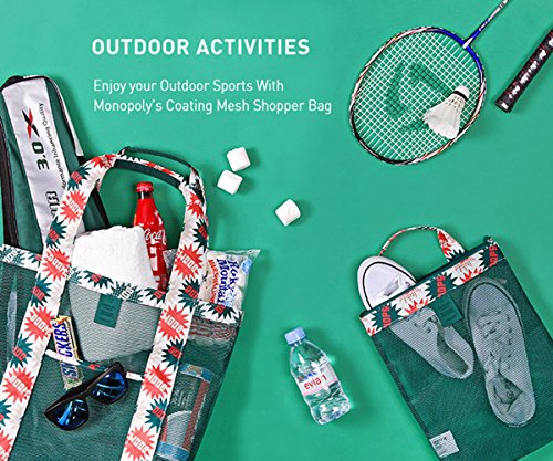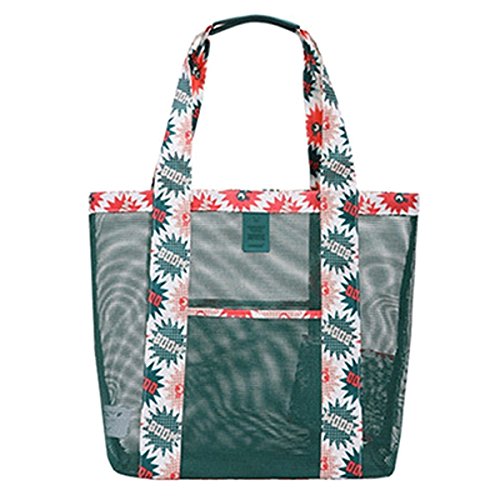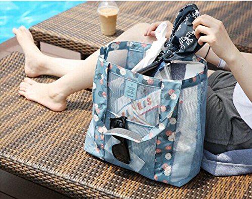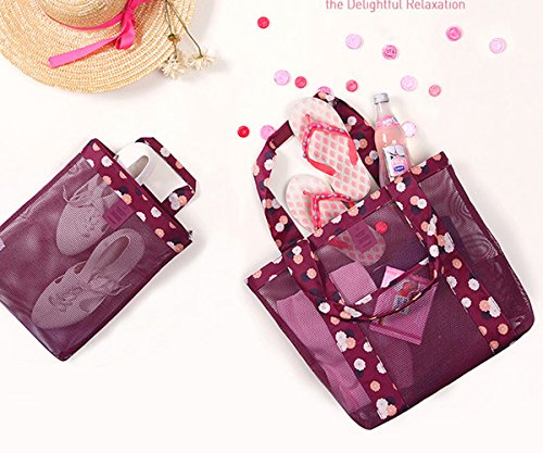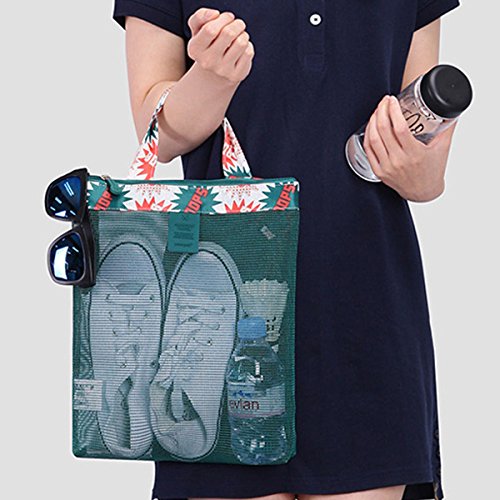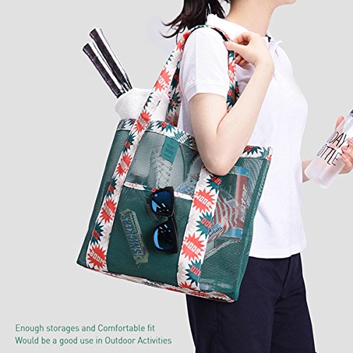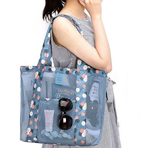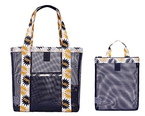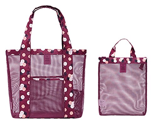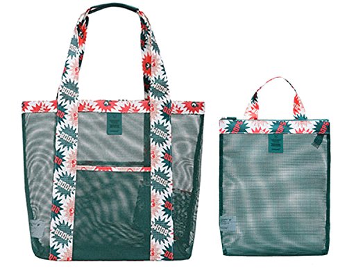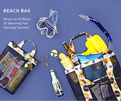 Product Description BEST Beach Bag you'll ever own! At last - the bag you've been waiting for that has it all: Large Bag:13.7"(L)*13.7"(H)*4.7"(W) Small Bag:10.2"(L)*12.4"(H)*1.9"(W) Carry everything you need for a day at the beach or pool in this perfect bag 2 outer big pockets to hold sunblock, water, flip flops, glasses and more interior pocket for water bottle This is the PERFECT bag for a day at the beach, pool or picnic at the park The durable yet lightweight mesh allows sand, dirt and water to fall through so it stays where it belongs. The most fashionable beach tote out there: Comfortable straps and webbing around the top edges and pockets prevent scratching or poking and allow easy carrying Large enough for several beach towels, toys and more Carry all your gear in one convenient bag 100% Satisfaction Money Back Guarantee. These beach bags are going fast, add to cart now and have yours in days! 0