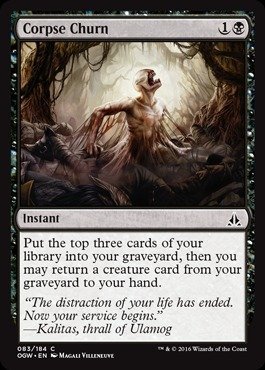 -. Binding : Toy -. Brand : Magic: the Gathering -. EAN : 0775006764170 -. Feature : Magic: the Gathering - Corpse Churn (083/184) - Oath of the Gatewatch / Black -. Label : Wizards of the Coast -. Manufacturer : Wizards of the Coast -. MPN : 6764170 -. PackageQuantity : 1 -. PartNumber : 6764170 -. ProductGroup : Toy -. ProductTypeName : TOYS_AND_GAMES -. Publisher : Wizards of the Coast -. Studio : Wizards of the Coast -. Title : Magic: the Gathering - Corpse Churn (083/184) - Oath of the Gatewatch by Magic: the Gathering -. UPC : 775006764170