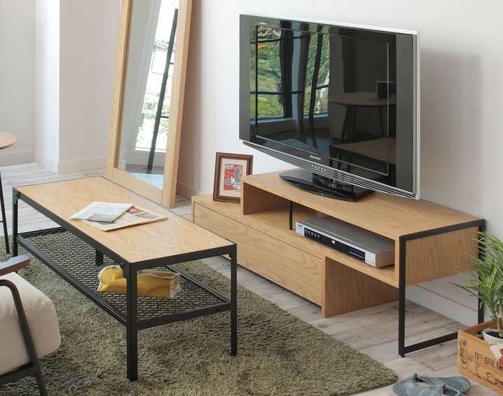 ●木とスチールの組み合わせが特徴的な、横幅100cmのフリーテーブル