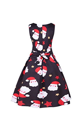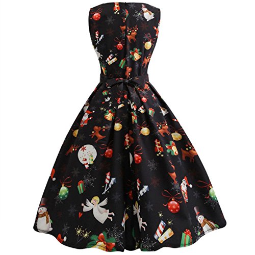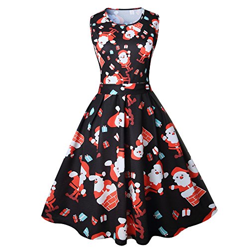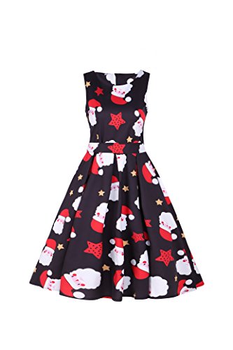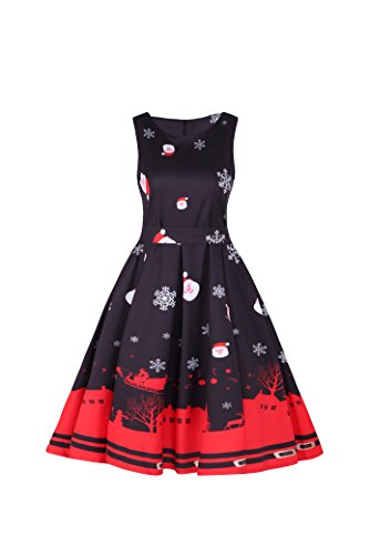 OQC Women's Sleeveless Christmas Santa Claus Print Cocktail Party Flared Dress with Belt