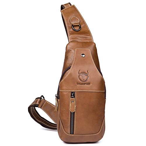 -. Title : Bull Captain Sling Backpack Genuine Leather Chest Shoulder Bags Casual Crossbody Bag Travel Hiking Daypacks 019