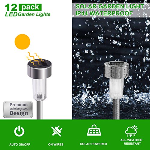 【Worry-free Warranty】--You will get 12 packs of outdoor solar LED garden lights and ONE YEAR replacement or refund warranty. 100% satisfaction guarantee provided for you.