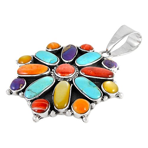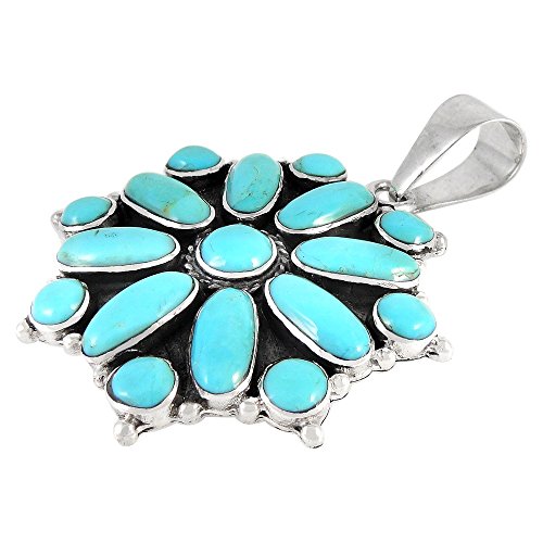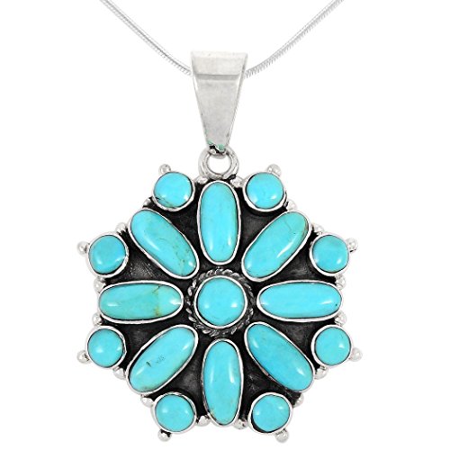 -. Title : Turquoise Necklace Sterling Silver 925 Genuine Turquoise & Gemstones Pendant (20" Length)
