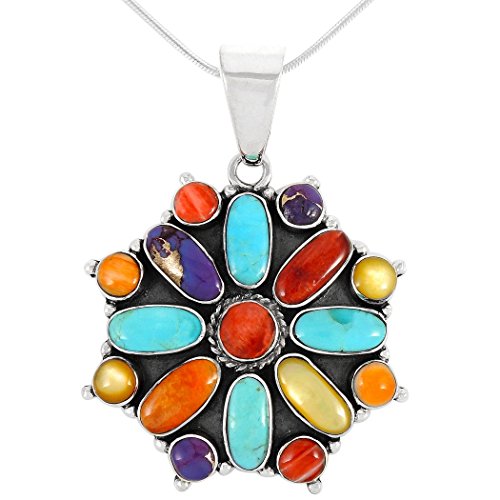 -. Feature : Pendant & 20" Snake Chain are solid 925 Sterling Silver / Genuine Gemstones / Approx 1.25" wide x 1.25" tall (see ruler image) / Premium Quality / Turquoise Network: Fine jewelry at UNBELIEVABLE low P.R.Ices!