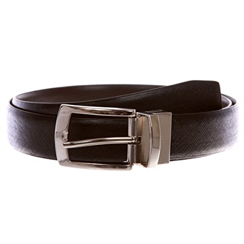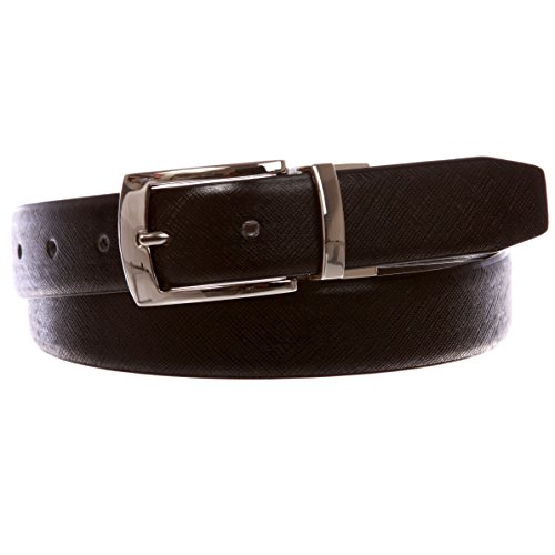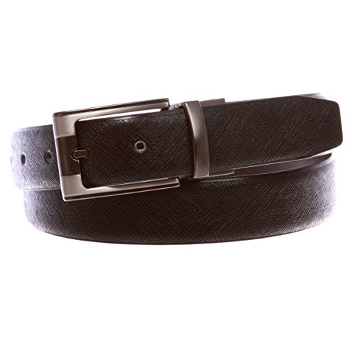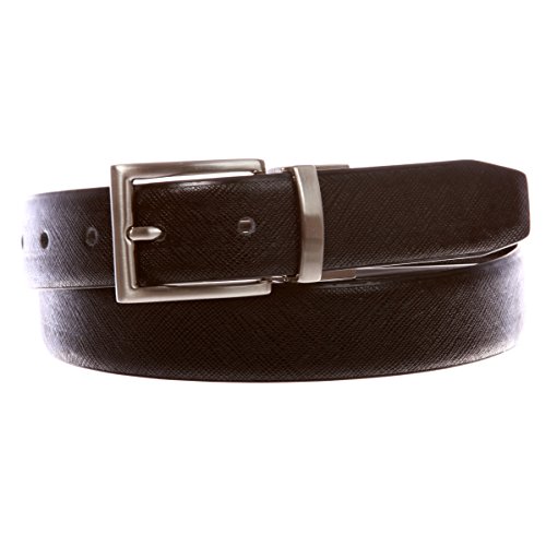 Product DescriptionMen's Classic Fashion Feather Edged Embossed Reversible Leather Dress Belt, order one size larger than pants size0