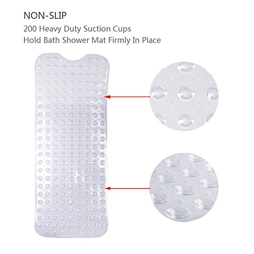 Bathtub Mats 38.78 x15.16inch, Balala Shower mats Anti-Bacterial Rubber, Non-Slip, Machine Washable - No Chemical Odor, Clear
