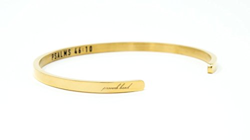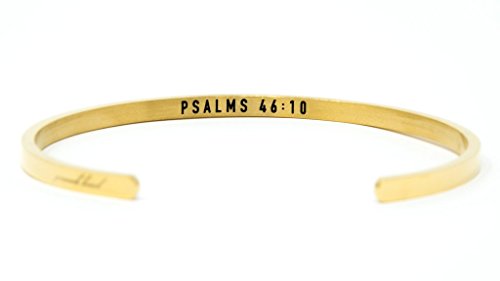-. Feature : Proverb: Psalms 46:10: Be still, and know that I am God: I will be exalted among the heathen, I will be exalted in the earth. / Proverb Bands are completely adjustable and will fit the smallest and largest wrists. Our company has carefully designed them with the sole purpose that you can wear them daily at work or at play. / They are lightweight, reliable, comfortable, and elegant. Our bracelets are made with the highest grade of tarnish resistant material so that with proper care, they will last a long time. / CARE: To care for your Proverb Band, avoid contact with heavy chemicals such as perfume, detergent, bleach, etc. Remove Gold Bands before shower or exercise as they are covered with 18K gold and avoid hot tubs and swimming pools for all bands. / To keep your band clean, rub with a soft cloth and store in the jewelry box or clean place.