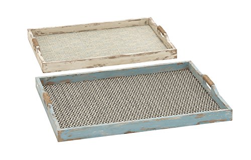 Benzara Classy Patterned and Designed Wood Fabric Tray, Set of 2