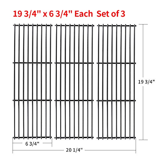 SHINESTAR Replacement Grill Parts for Chargriller Grill Model 3001, 3008, 3030, 3725, 4000, 5050, 5252, King Griller, Porcelain Coated Cast Iron Cooking Grate /Grid (Set of 3, 19 3/4’’ X 6 3/4" Each)