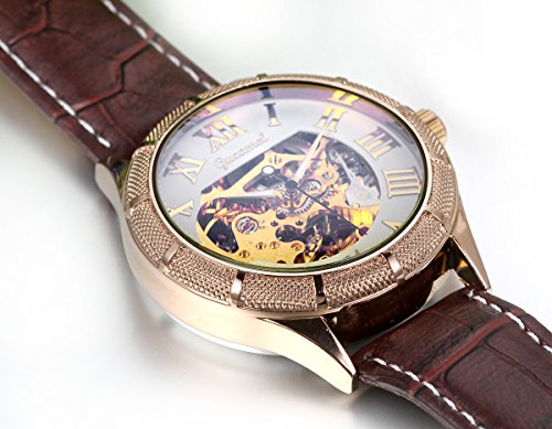 JewelryWe 손목시계 맨즈 레더 벨트 클래식 심플 워치,로마숫자 기계식,크리스마스 발렌타인 선물