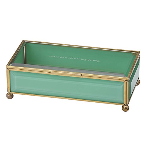 -. Feature : new york jewelry box / Turquoise glass with a clear glass lid / Inscribed with "When in doubt add something sparkling" / Looks great on a vanity, bedside table, dresser or bathroom counter / 8" L x 4" W x 2.1" H