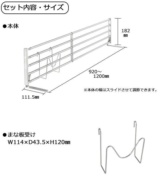 | 素材・材質 | 【本体】 パイプウォール:(金属部)ステンレス、(樹脂部)ナイロン 脚:ステンレス すべり止めゴム:EPDMゴム 【まな板受け】 ステンレス |