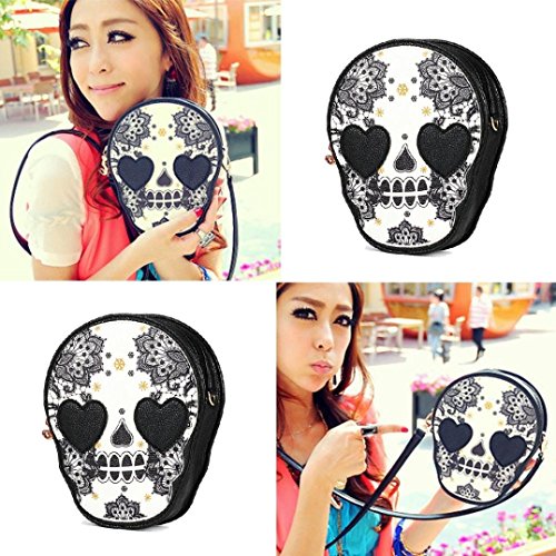 -. Title : Franterd Women Shoulder Messenger Bag Black Skull Handbag Purse