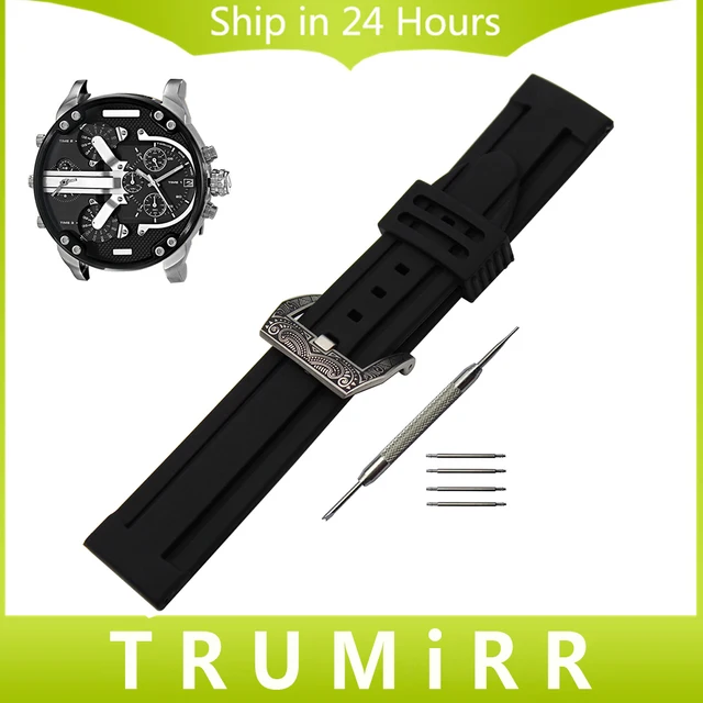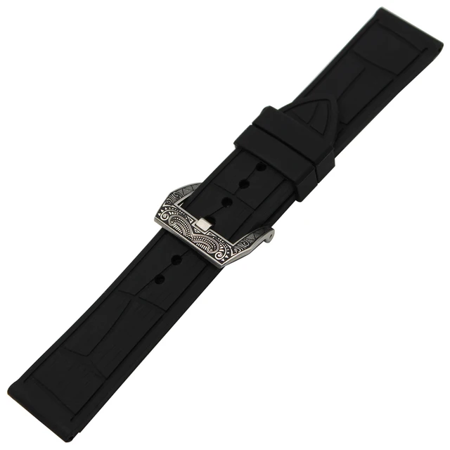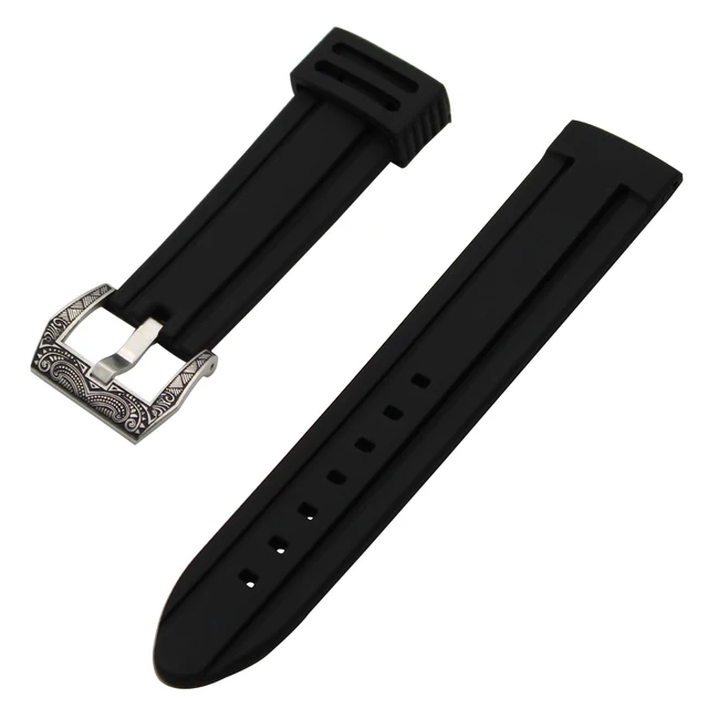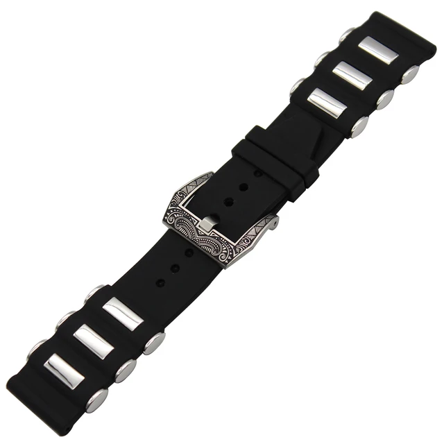 | [해외] 실리콘 고무 시계 밴드 + 조각 PAM 버클 316L 스테인레스 스틸 디젤 남성 여성 손목 스트랩 팔찌 블랙 22 미리메터 24 미리메터 |