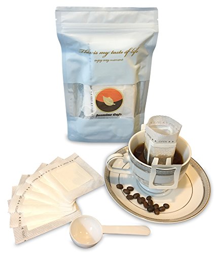 ✔ HERE’S WHAT YOU’LL RECEIVE: 1 Bag of Jasmine Cafe 60-Count Disposable Premium Coffee & Tea Drippers (3.5x2.75 in.) w/ Instructions, & 1 Tablespoon Measuring Scoop.