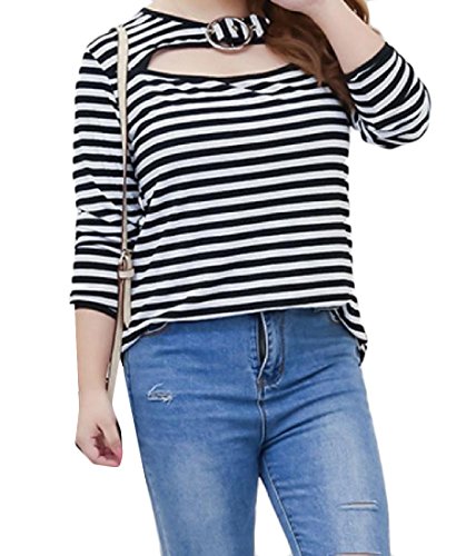 -. Title : Tootess 女性のエレガントな特大の縞模様の中空に飾られたtシャツ・ティー