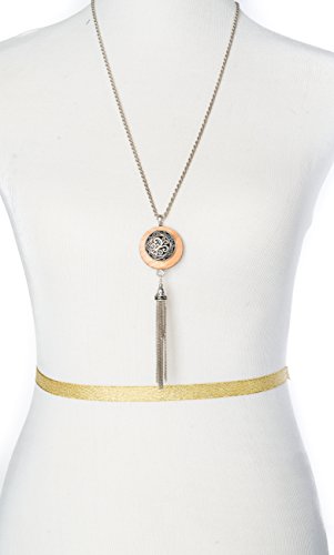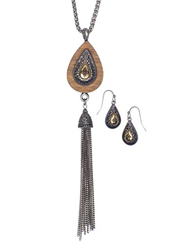 -. Title : Filigree Celtic Claddagh Wooden Charm Long Necklace Tassle & Matching Earrings