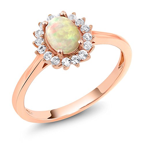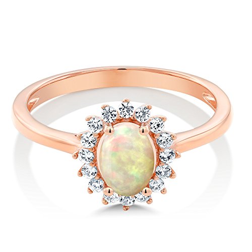 -. Title : 10K Rose Gold 0.75 Ct Cabochon White Ethiopian Opal White Created Sapphire Ring