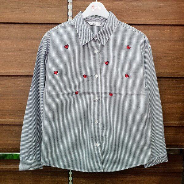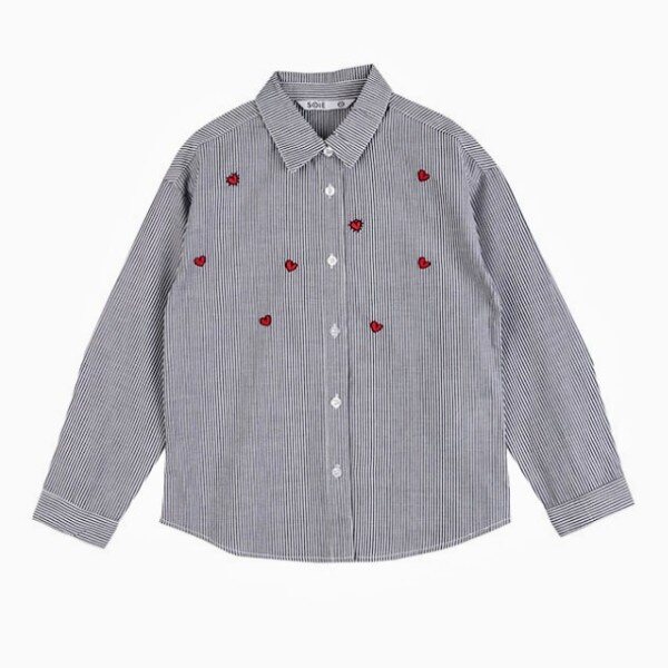 [18년 가을 소이] (여) 하트 자수 스트라이프 셔츠