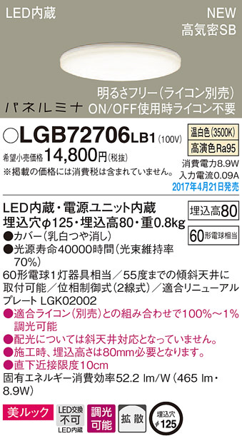 ●材質/色/仕上げ:カバー(乳白つや消し)