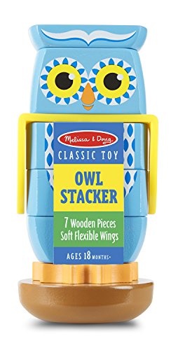 Who-who-who's ready for stacking fun? Colorful details and vibrant patterns add lots of character to a classic wooden toy. When the seven wooden pieces slot over the central dowel, the wide-eyed owl perches on a rounded base that helps prevent tipping. The pieces can also be stacked on their own . . . or sorted, counted, traced and more - included extension activities offer lots of ideas for playtime.Feature