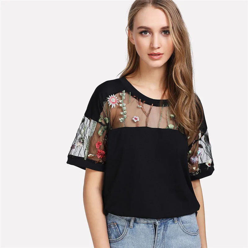 Decoration: Sheer, Embroidery, Contrast Mesh