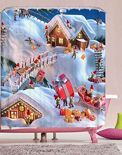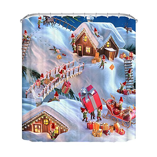 Christmas shower curtain mildew resistant fabric waterproof polyester eco-friendly anti bacterial plastic rust proof grommets 72 x 72 stall shower curtain bathroom liners (72x72, Santa Claus)