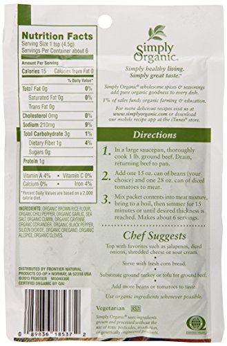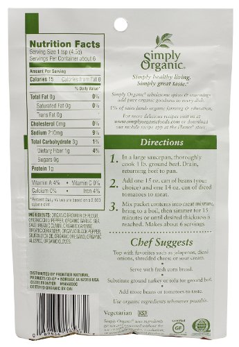 Simply Organic Spicy Chili, Seasoning Mix, Certified Organic, 1-Ounce Packets (Pack of 12)