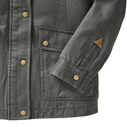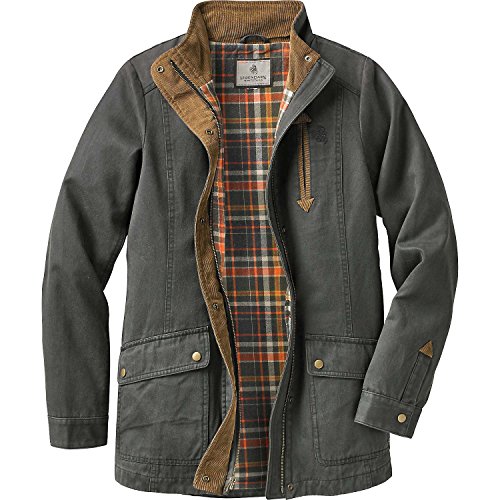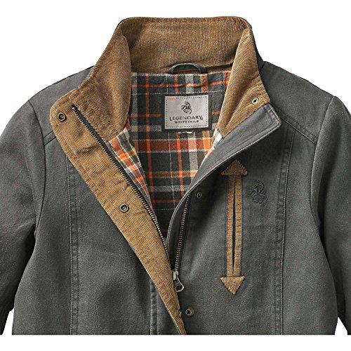 Studio : Legendary Whitetails Publisher : Legendary Whitetails Binding : Apparel Product Description Tough enough for chores but styled for a night out! A durable soft washed waxed cotton?poly blend shell that has a water resistant finish and is lined with a brushed 100% cotton flannel. Featuring a heavy duty zipper with snap down storm flap, drop tail back, big cargo pocekts with flaps, and flannel lined hand warming pockets. Finished with corduroy accents, embossed antique brass Legendary® metal tag, and Legendary® Signature Buck embroidery. Material: Shell- 63% Cotton and 37% Polyester Body Lining- 100% Cotton Sleeve Lining- 100% Nylon Wash: Machine wash cold with like colors. Do not bleach, Tumble dry low. Do not iron on decoration. 0 |