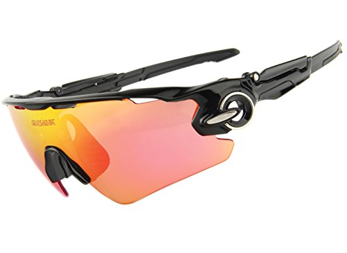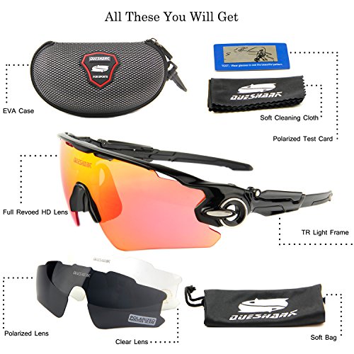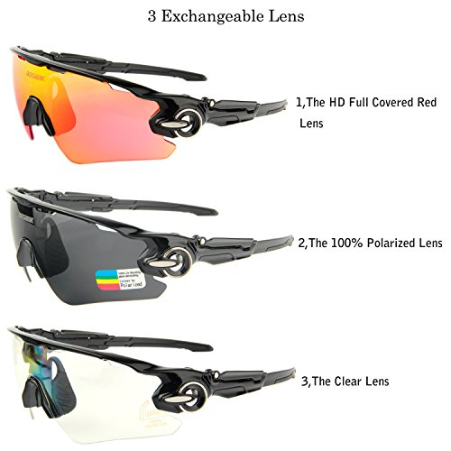 3 FUNCTIONAL LENSES are all with 100% UV400 Protection Coating: The Main Black lens is Polarized Lenses eliminate glare and reduce eye fatigue, the Red Lens are Full Revoed Red Sunglasses for Different Environmental Condition