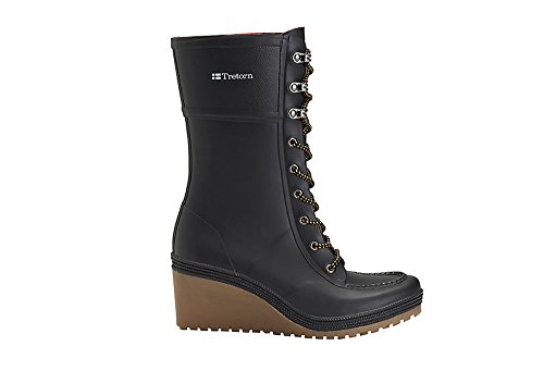 Studio : Tretorn Publisher : Tretorn Binding : Apparel Product Description Tretorn Size Chart Inspired by Tretorn's 1930s high heeled galoshes, the Plask Lace adds a touch of sophistication to sloppy rainy days with a wedge heel, soft buffalo check lining, and two-tone laces to the calf. Swedish for 'splash', this waterproof, PVC-free olive rubber boot also includes Swedish Massage Teknology insole and will have you rooting for not-so-perfect weather. Features: - 100% waterproof natural rubber upper. - Gusseted tongue. - PVC free. - Matte finish. - Collar width: 33.5 cm. - Shaft height: 24 cm. - Textile lining. - Swedish Masssage Technology molded EVA insole. - Rubber midsole and outsole. 0
