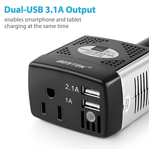 DC to AC Inverter: 1 AC outlet and 3.1A dual USB charging ports ideal for powering laptops, tablets, smartphones and other electronic devices