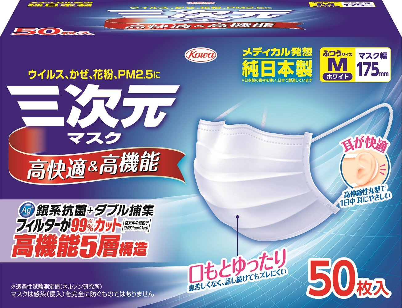 Japan Facemask - Three-dimensional mask ordinary size white 50 pieces *AF27*