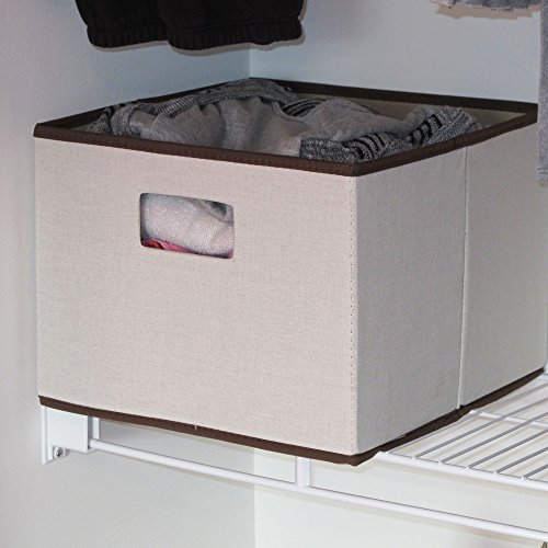 Household Essentials Storage Bin with Handles, Natural Canvas with Brown Trim