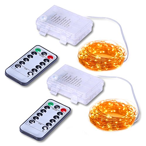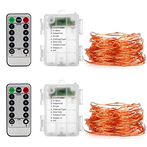 Led Fairy Lights String 2 PACK 16.5 ft of Flash Twinkling 50 leds Battery Operated Waterproof Copper Remote for Thanksgiving Christmas Tree Wedding Party Bedroom Twinkle Decoration Outdoor Indoor 16.4