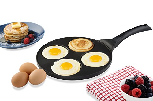 INNOVATIVE PANCAKE PAN - Versatile Stovetop Griddle Features 4 Built-In Cups for Cooking Uniform Silver Dollar Pancakes; Great for Blinis, Blintzes & More