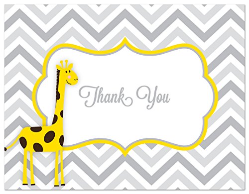 50 Cnt Yellow Giraffes Grey Chevron Baby Shower Thank You Cards