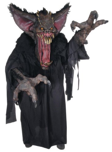 -. Binding : Apparel -. Brand : Rubie's -. ClothingSize : Standard -. Color : Black -. Department : mens -. Feature : Bat creature costume includes a deluxe latex mask, arm and hand extensions and tattered robe / Rubies features hundreds of wigs, weapons and other accessories to get the look you really want for your party, stage costuming or role playing fun / Why wait for Halloween - also great for stage, pranks or one-on-one play time year round / Adult standard size fits chest size up to 42e costume fits / Rubies Costume Company is a family owned business based in New York with more than 60 years of experience bringing children and adults the costumes and accessories they want to Halloween and year-round dress up -. Genre : Classic -. IsAdultProduct : 0 -. Label : Rubies Costumes - Apparel -. Manufacturer : Rubies Costumes - Apparel -. MPN : RU73106 -. PackageQuantity : 1 -. PartNumber : RU73106 -. ProductGroup : Apparel -. ProductTypeName : ADULT_COSTUME -. Publisher : Rubies Costumes - Apparel -. Size : Standard -. Studio : Rubies Costumes - Apparel -. Title : Rubie's Costume Creature Reaches Gruesome Bat Creature Costume